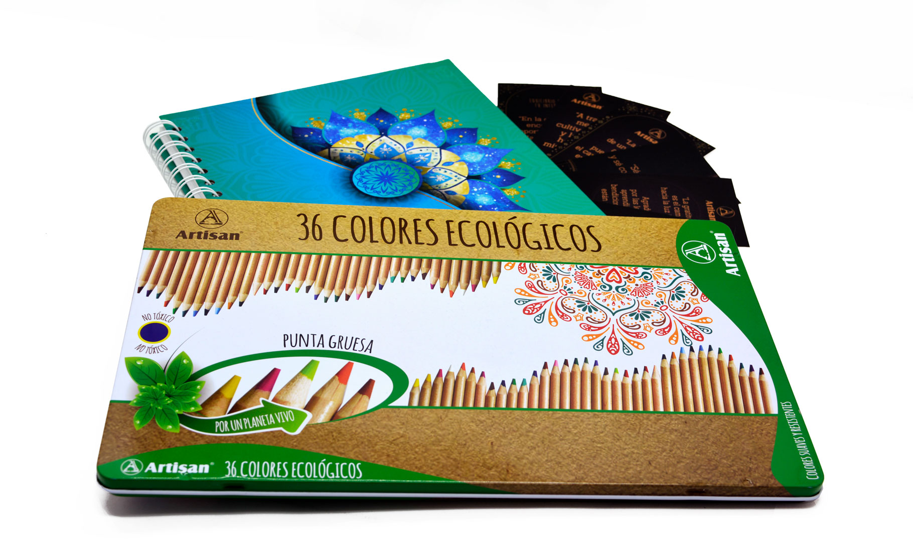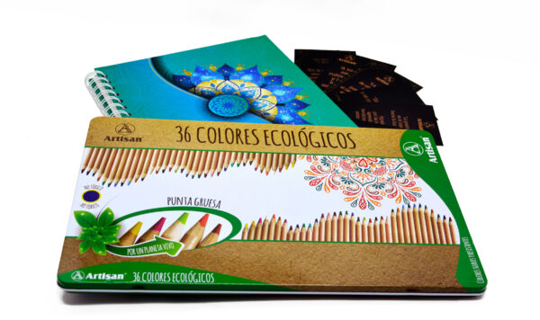 - El libro Artisan contiene: el libro para colorear con más de 50 mandalas + Caja Metálica de colores ecológicos x 36 Artisan, Además frases de motivación