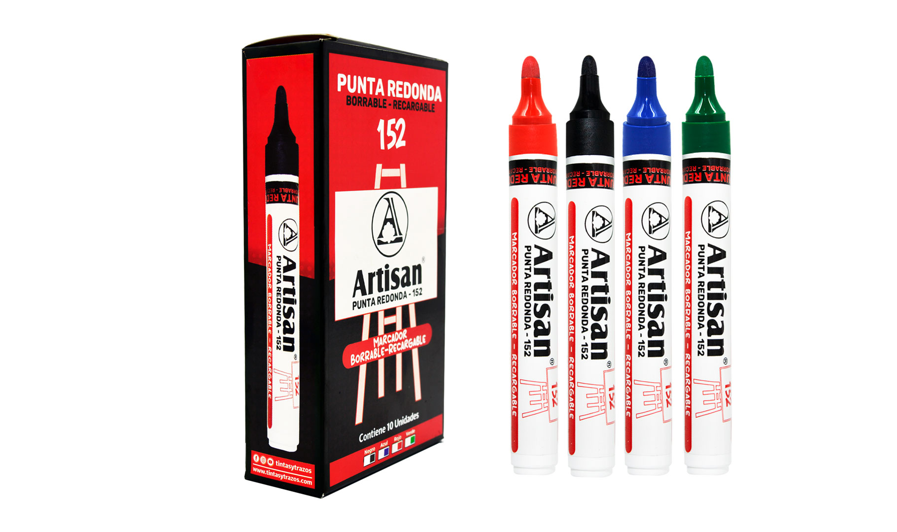 Marcador Borrable Recargable punta Redonda Artisan x 10 und